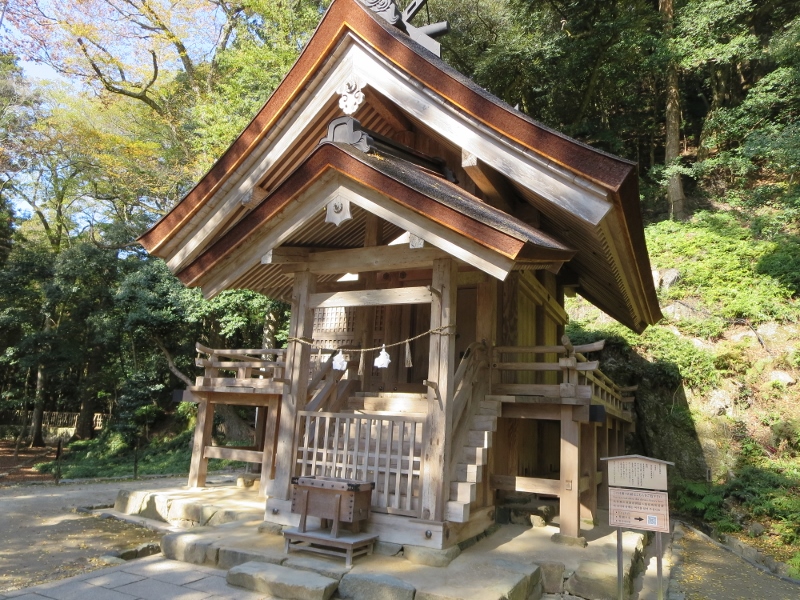 出雲大社本殿は、御祈祷などをお願いしていないとお参りできませんが、裏手を周ってみると本殿の様子がわかります。この社は本殿のちょうど裏手で階段を登っていくので本殿を見下ろす感じでした。須佐之男命が祀られているので暴れん坊の須佐之男命に見張られている気がしました。