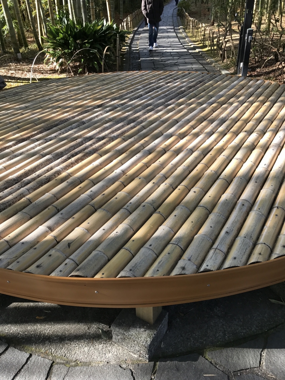 小径の真ん中には、大きな竹製の円形のベンチがあります。