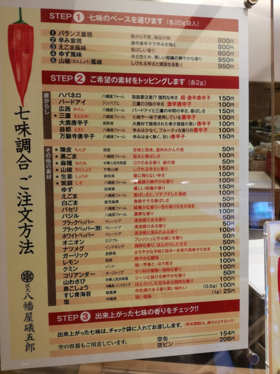お客さんでごった返しているので、陳列されている商品をじっくり見て回るという雰囲気ではありませんが、色々な七味があって、面白いです。