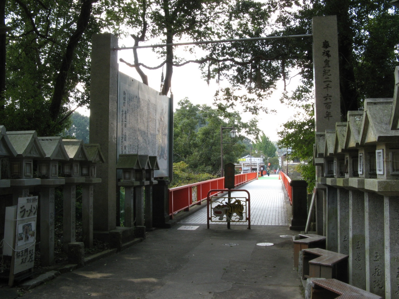歩行者専用の橋で、車は通れません。中央にはバンジージャンプができるデッキが設置されています。橋の上からの眺めも良いですが、朝護孫子寺の入口の手前の駐車場付近から橋全体を眺めることができるので構造がよく判ります。