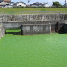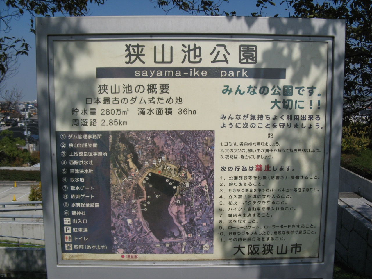 日本最古のダム式ため池で、池の周囲には、周遊路が設けられていて、ゆっくり歩いても1時間足らずで一周できます。訪れたときはダムの周りは、水が濃い緑色になっていてたくさんの亀を見ることができました。ダムカードは、近くの近くにある狭山池博物館でもらえます。