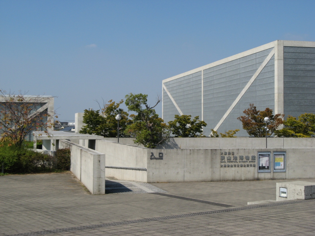 安藤忠雄が設計したモダンな建物の博物館です。狭山池の1,400年にわたる歴史や改修にともなう文化財調査で出土した土器や瓦などが展示されています。入館料、駐車料とも無料でよいのですが、館内撮影が禁止されているのは残念です。なお、狭山池ダムのダムカードを頂くことができます。