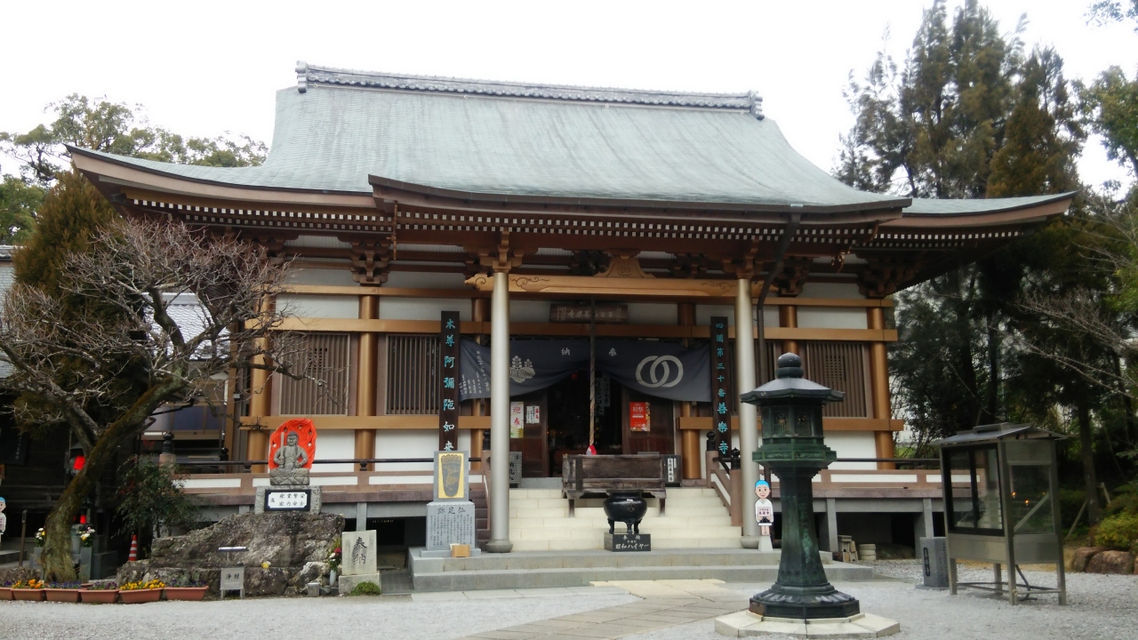 土佐一の宮の土佐神社の隣にありました。神仏習合で分けられたのでしょう。ご本尊の阿弥陀如来をいただく本堂をお参りしました。納経所で御朱印をいただくことができました。新春なので懐紙をお接待として贈呈されました。