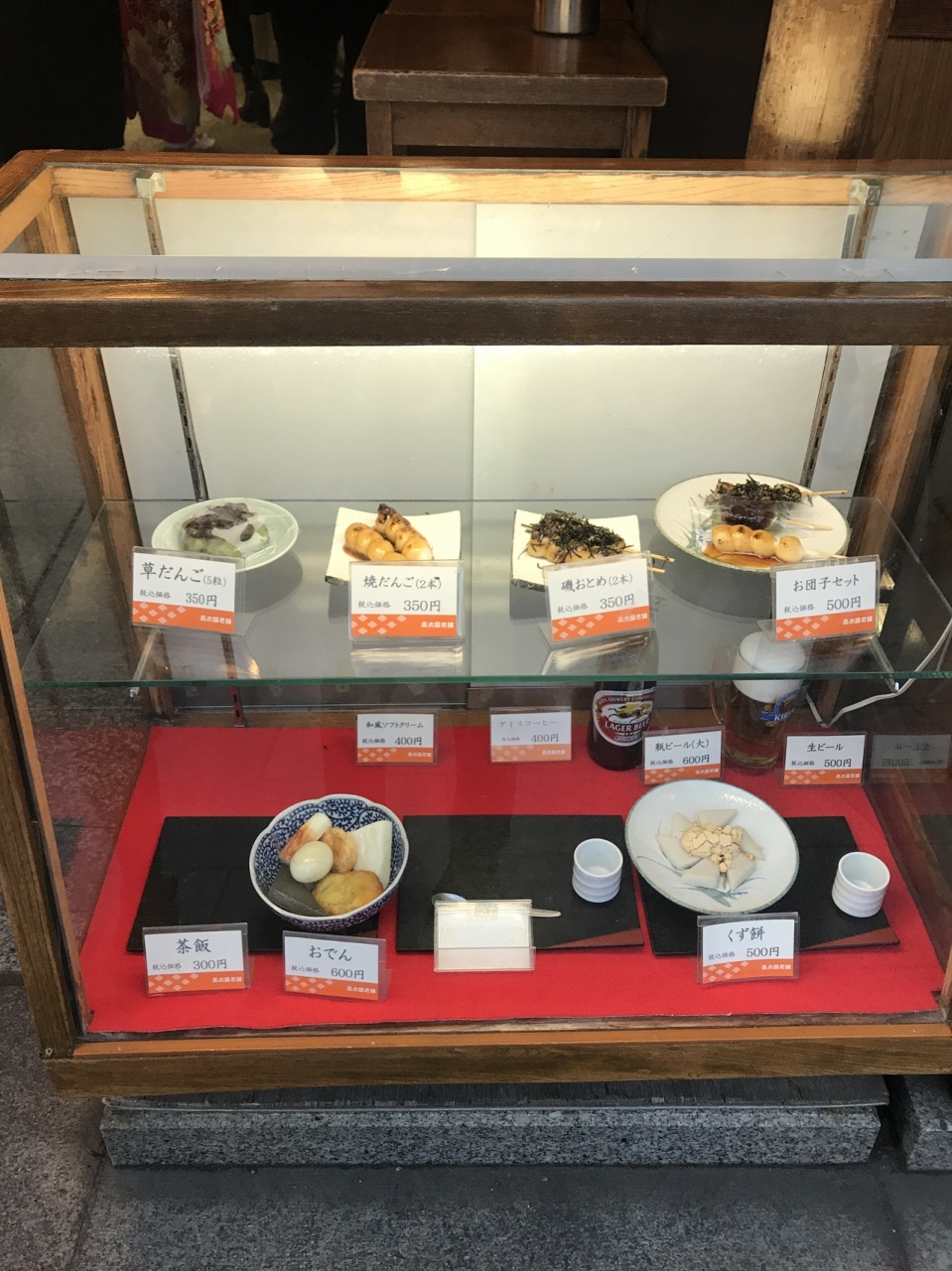 お正月のテレビでやっていたので 店頭で草団子と醤油の甘辛団子を購入。他におでんも売ってました。お餅は若干温かさが残っていて 寒い身体には幸せでした。店内も混んでいますが、草団子が350円で食べられて風情があって良いですね