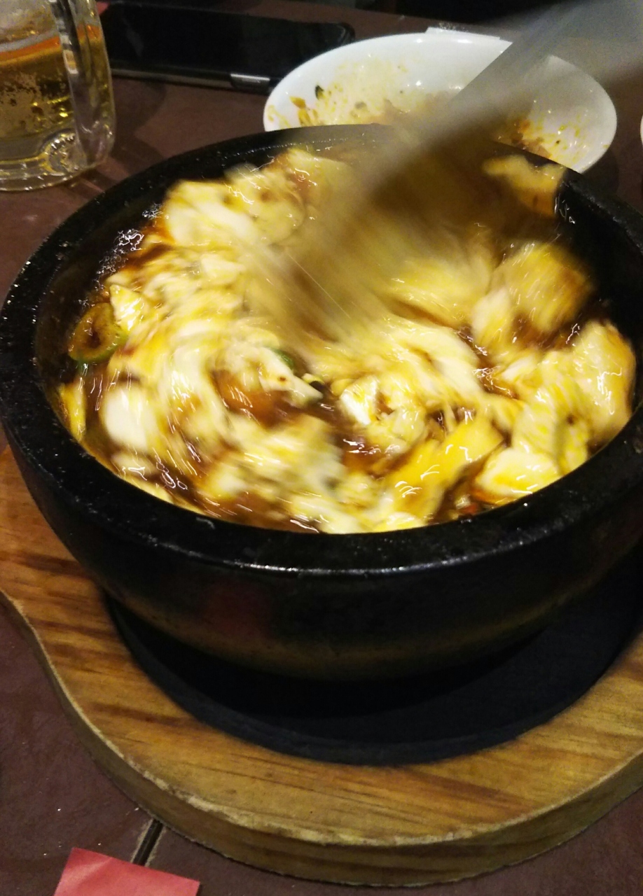 店員さんが目の前で混ぜてくれる石焼麻婆豆腐は、湯気からもすでに辛い。熱々で、うま辛の麻婆豆腐でした。辛いものが弱い方には厳しいかもしれません。