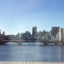 浅草の隅田川にかかる橋です。アサヒビール本社の金色のオブジェが目立つので、その近くに行けば、吾妻橋に行くことができます。