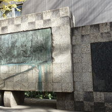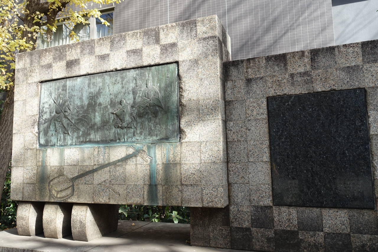 江戸時代に伝馬町の牢屋敷のあった、十思公園の一角、吉田松陰終焉の地の碑の隣に、立派な石碑が建てられています。杵屋は江戸長唄三味線方の名前で、代々の名前が彫られているようでした。目を引くのは、歌舞伎のレリーフで、石碑の中に優雅さを感じられます。2代目が馬喰町に住んでいたことから、ここに碑が建てられているのかもしれません。