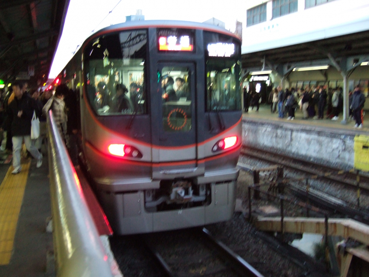 国鉄時代からの懐かしい車両が頑張っていた大阪環状線に、ついに新型車両が入りました。ホームに上がると、ちょうどその新車が来ていてラッキー。
