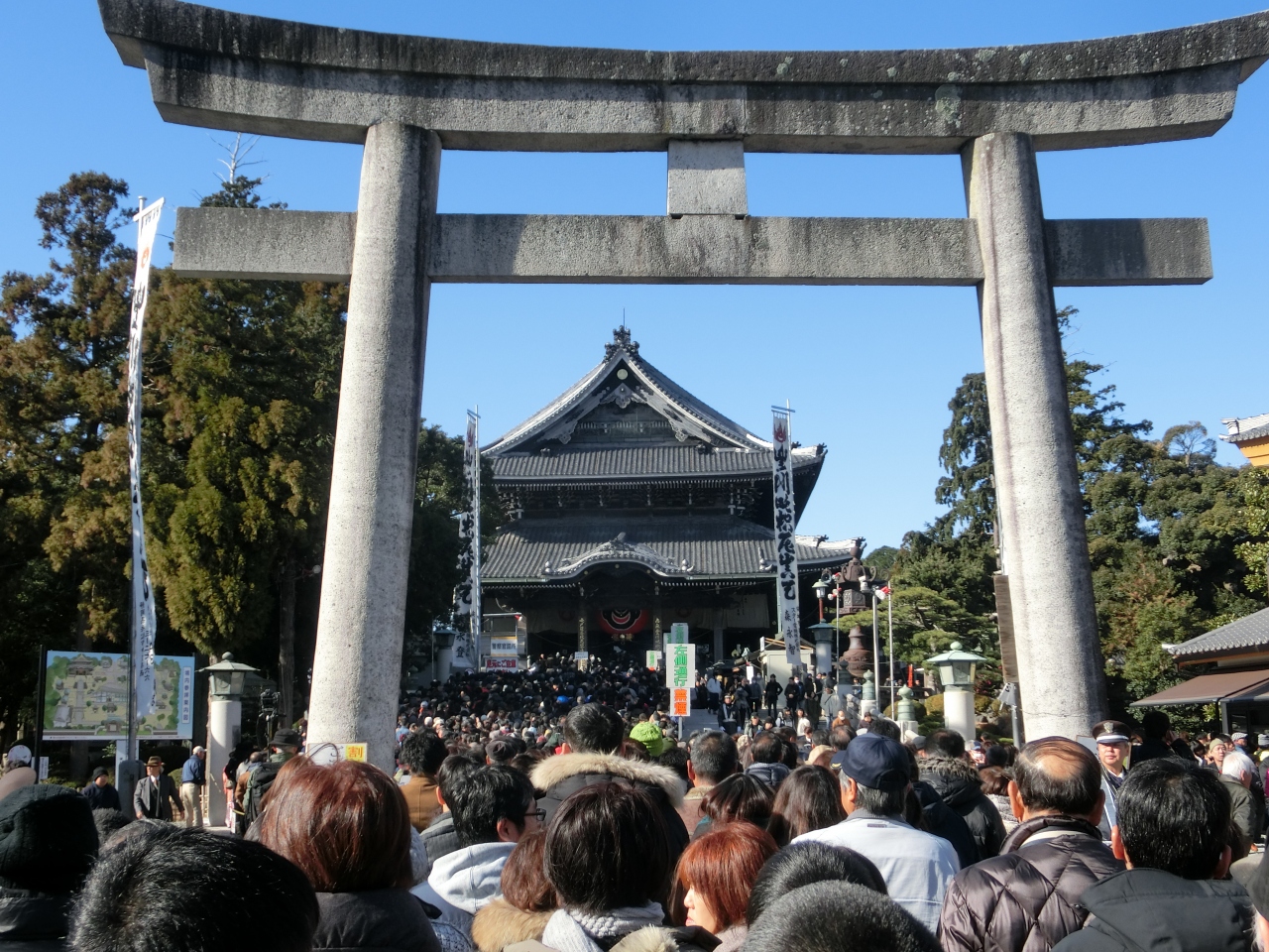 まず、駐車場に到着するまで一時間以上の渋滞に巻き込目れてしまい、ぐったりとしてようやく到着。参道を列に従って歩くこと数分、ようやく本殿が見えてきた、境内は賑やかに様々な屋台が出ていて、これらの店で買い物をするために並ぶ列と参詣に向かうれる列が交差していずれの列か分からなくなる時もある。いよいよ本殿前であるが、階段に並ぶこと数十分、入場制限しているようで進む速度はカメの歩み程度である。