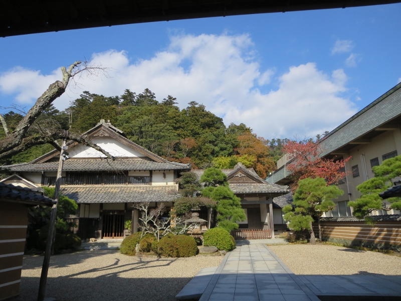 神楽殿から西へ向かうと千家国造館がありました。出雲大社の代々の宮司を務める千家国造のお屋敷です。大きなしめ縄が飾られた長屋門だけでも立派ですが、門の奥にはお屋敷の入口がいくつか見えました。門の右手に宮司の長男が結婚された時の打出の小槌などが飾ってありました。