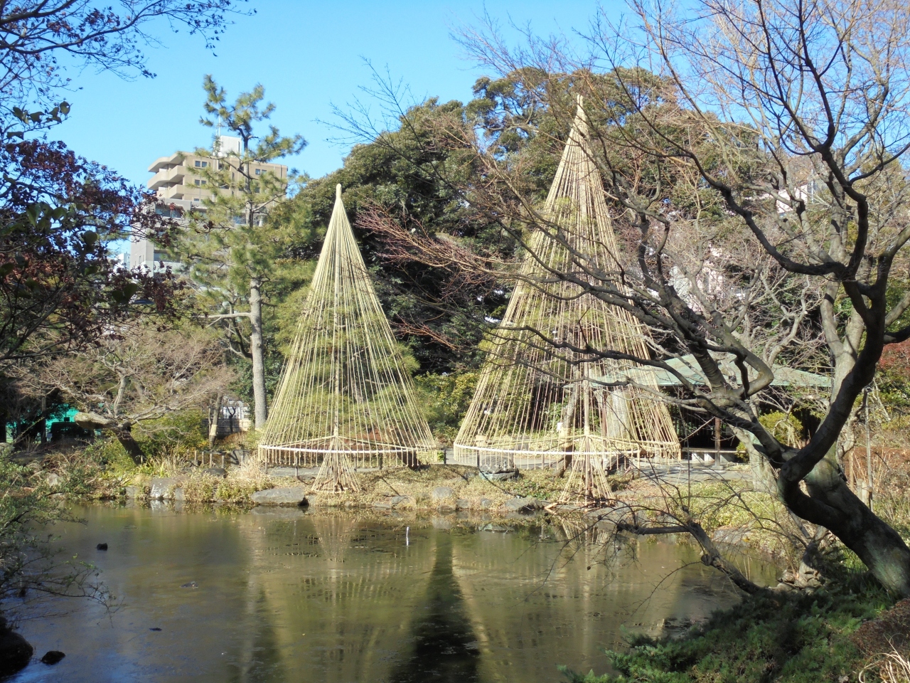 訪れたのは正月明けの寒い日で花はツバキくらいしか咲いていなかったが、この時期は雪吊りを見ることができる。