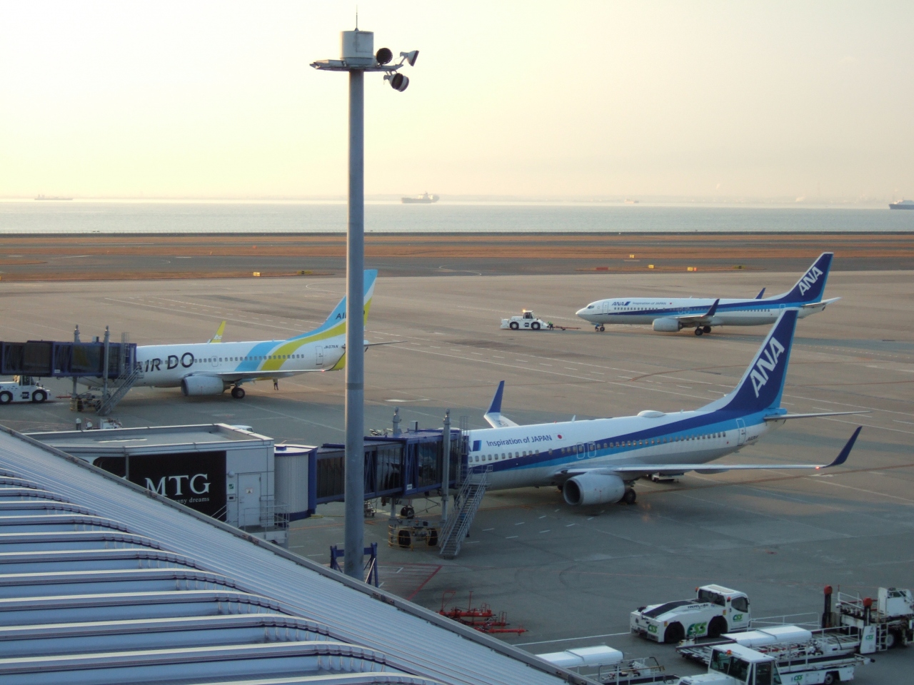 海の上につくられた空港だけあって、冬は海風が強くて寒いです。