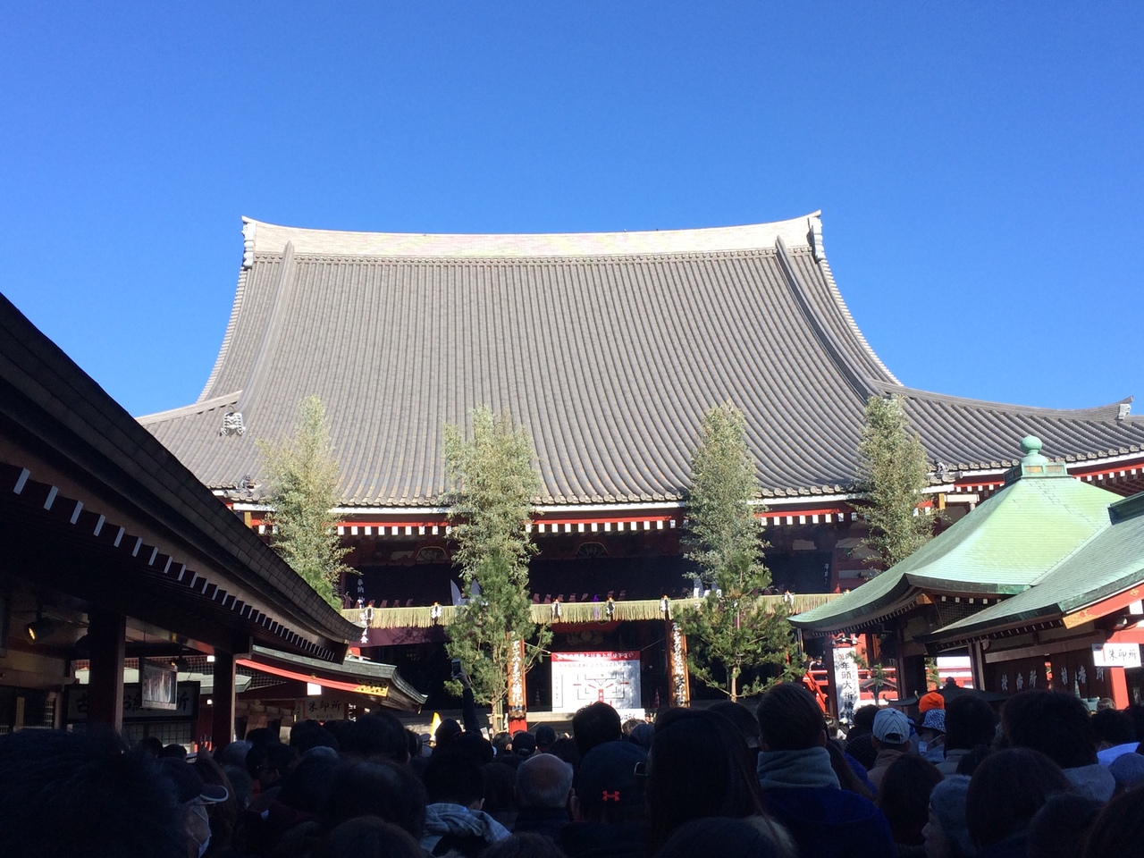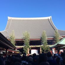 浅草の観光名所、浅草寺。雷門から仲見世通りを通って進んで行くと、本堂がありました。
