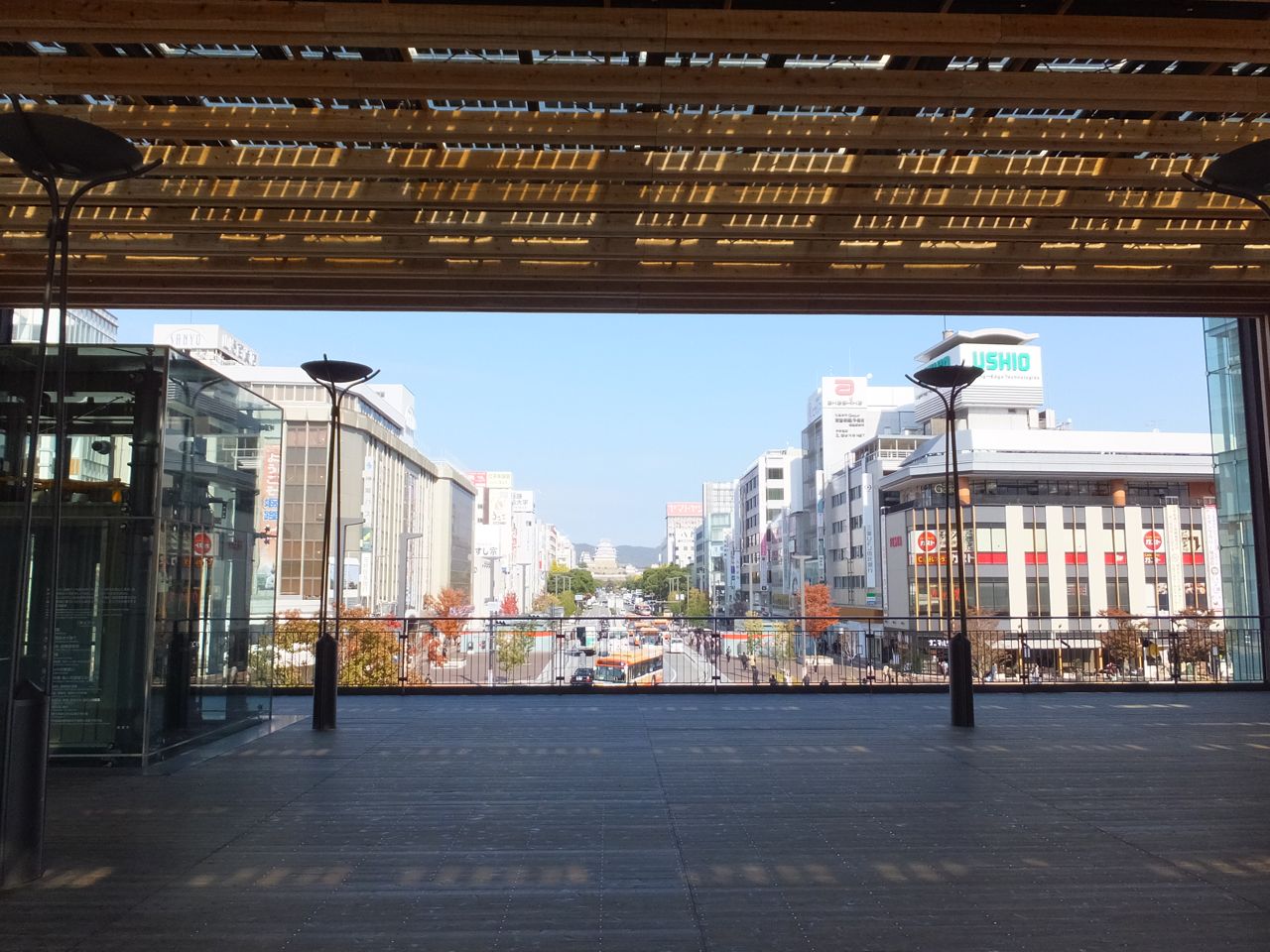 なお、駅ビルの2階の博多側にはテラスがあって、姫路城を真正面に眺める絶景展望台です。かいものついでに寄ってみましょう。