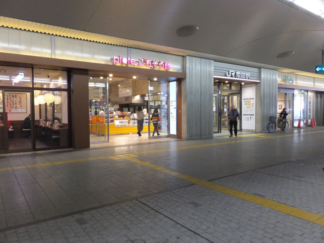 姫路駅の高架下の大部分と駅前に建つ駅ビルの2カ所に大きくわかれ、高架下は通路で4カ所にわかれています。その総称のようです。旅人に用のあるのは東側のごちそう館部分と新幹線側のお土産館部分でしょう。