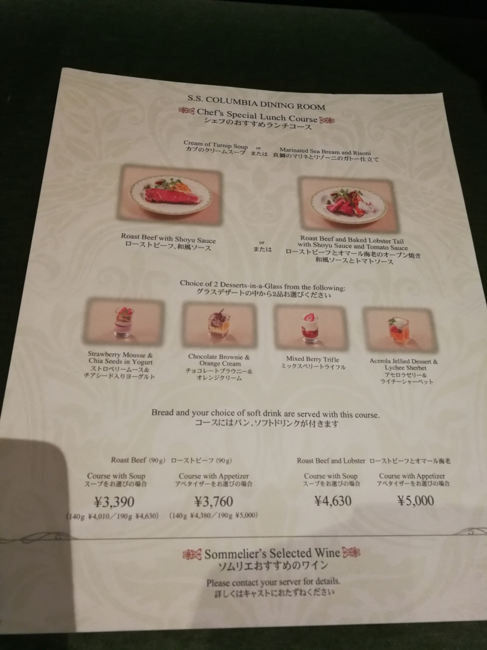 以前は、グラスデザートは、食後に4つ運ばれてきて、その中から2つ選びましたが、今回は最初のオーダー時に選びました。前のほうが良かったです。