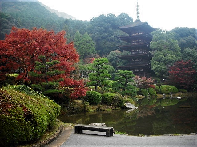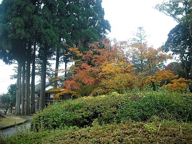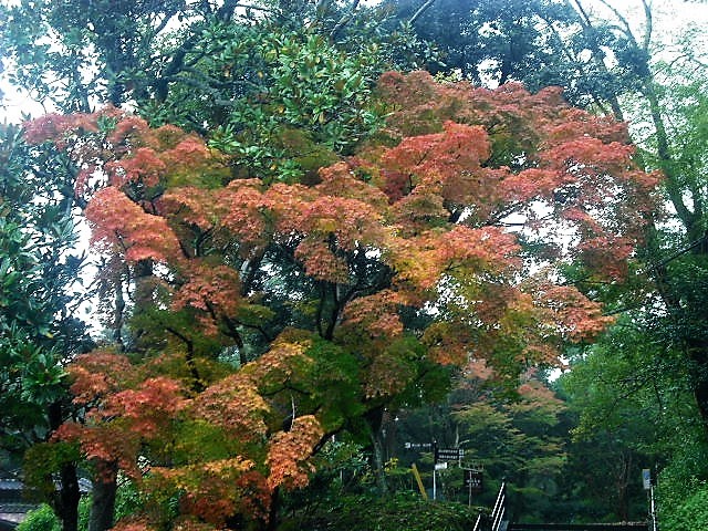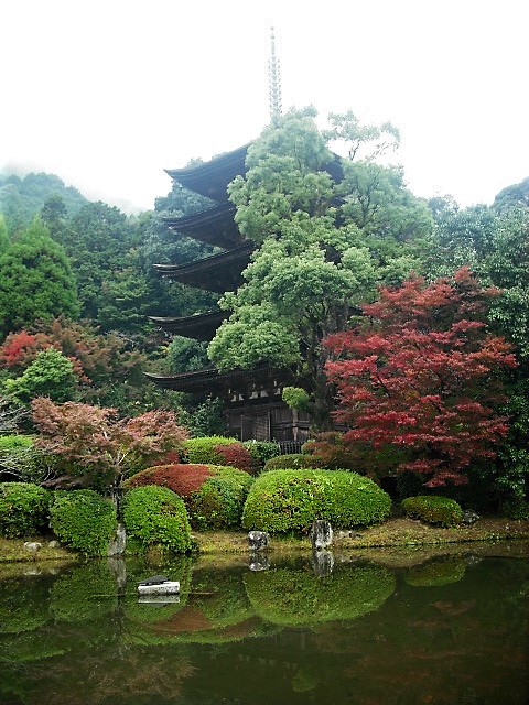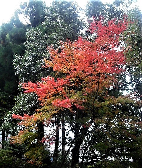 五重塔のそばにも何本か赤い木が見え、彩がありました。