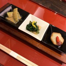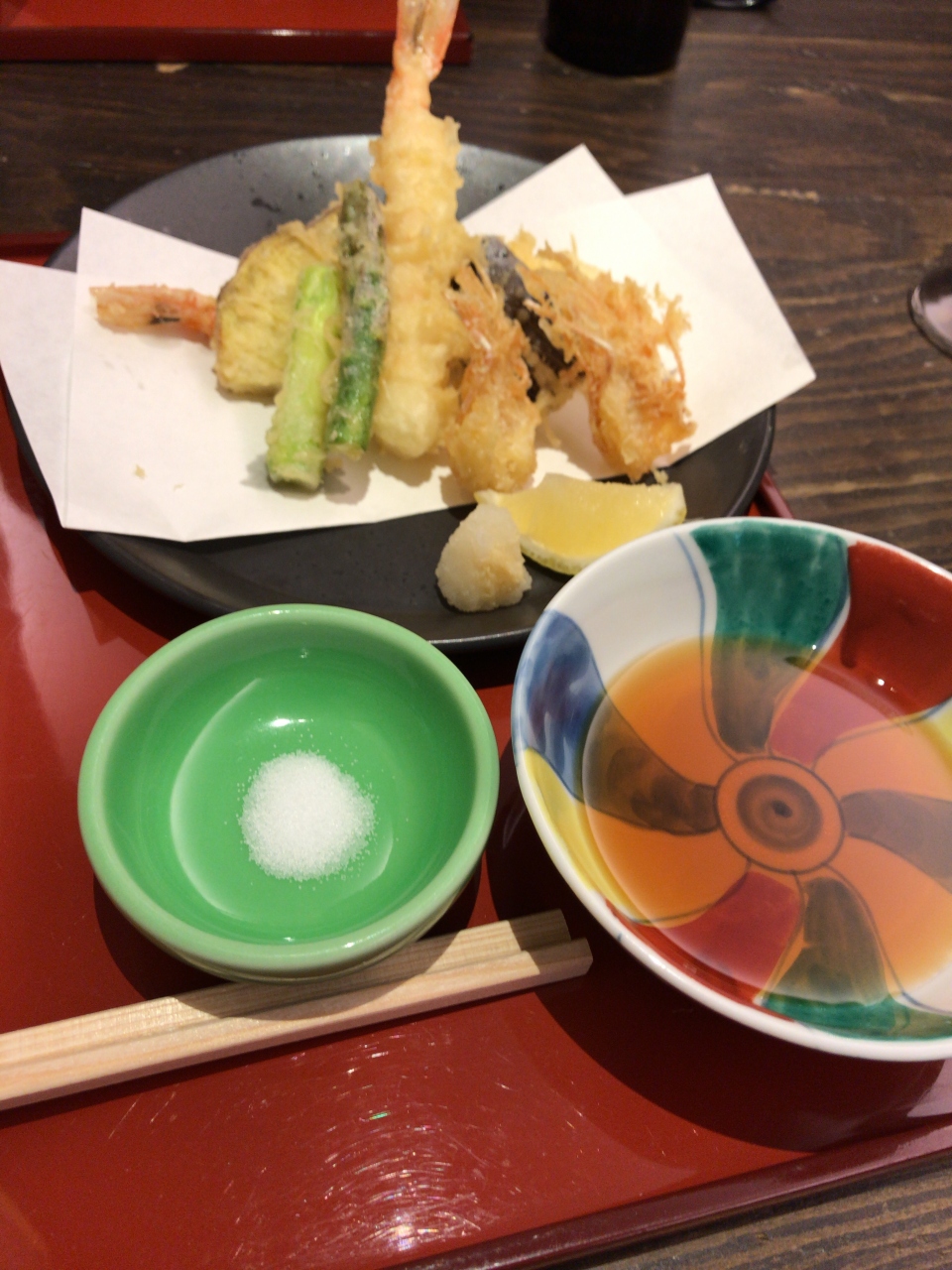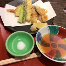 前菜、天ぷら、蕎麦(うどんでも可)、デザートのコースです。