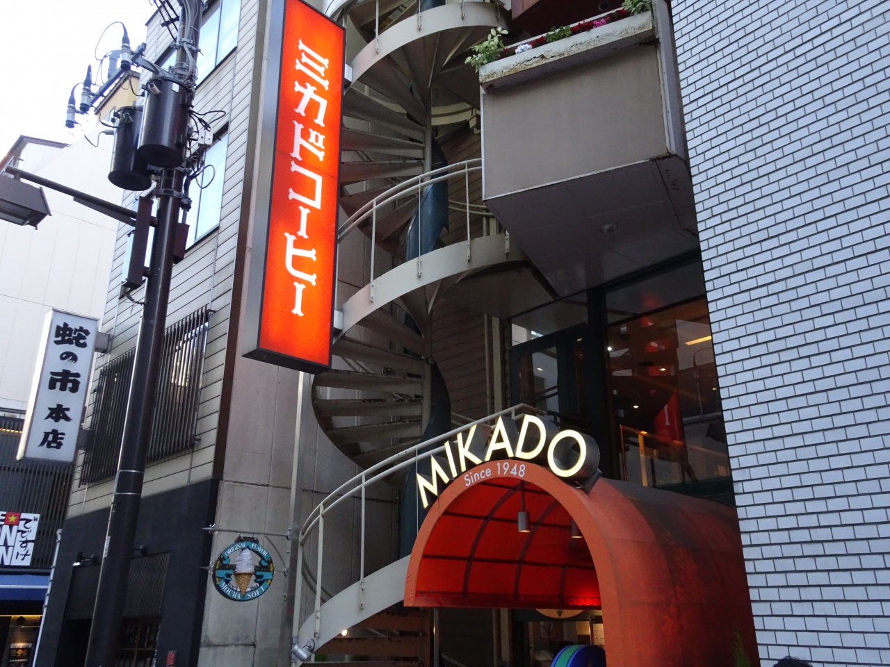 日本橋界隈を歩いていたときに「ミカドコーヒー」の看板を発見。軽井沢が本店かと思っていたら、実はこの場所が発祥の地なんですね。このお店の魅力といえばやはり「モカソフト」喫茶店に立ち寄っていただきました。コーヒーの苦味を感じられる大人の味ですが、これがまたおいしいんです。