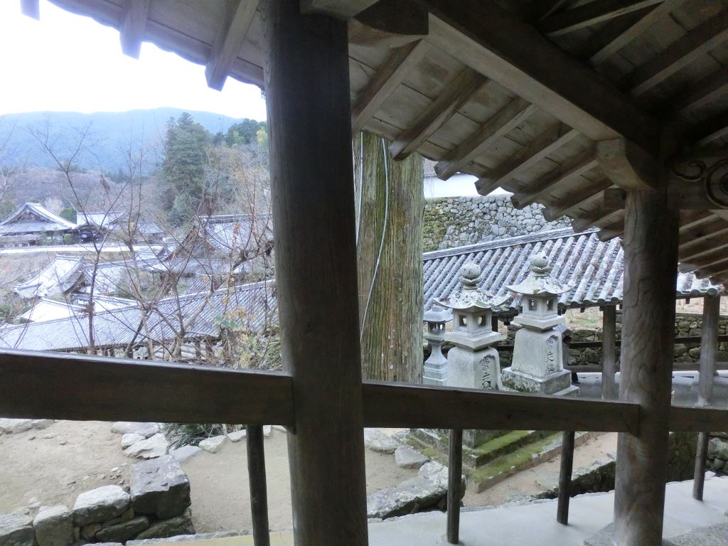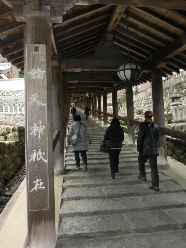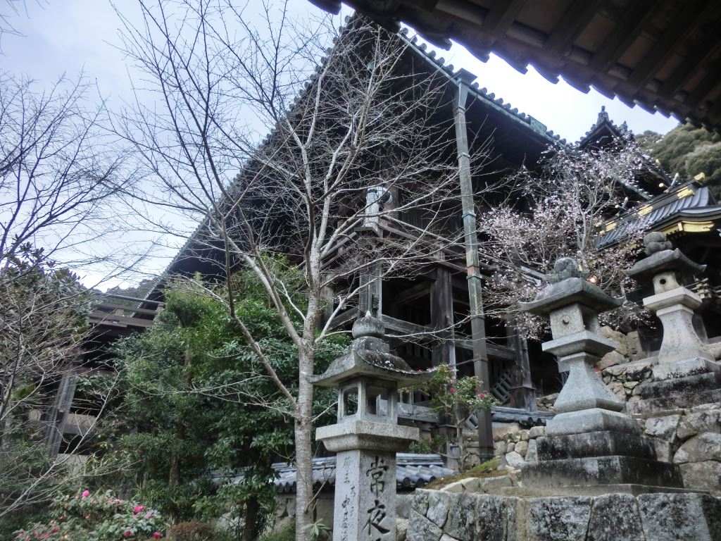 豪壮な仁王門から続く登廊は全部で399段あります。中程で鍵型に右に折れ直ぐに左に曲がり本堂へ上っていきます。鍵型に右に折れた部分から今上ってきた登廊を眺めると印象的です。登廊の終り部分では左手に断崖絶壁に建つ本堂を下から眺められ懸け造りの構造がよくわかります。登廊は長いですが緩やかですので苦にはなりません。