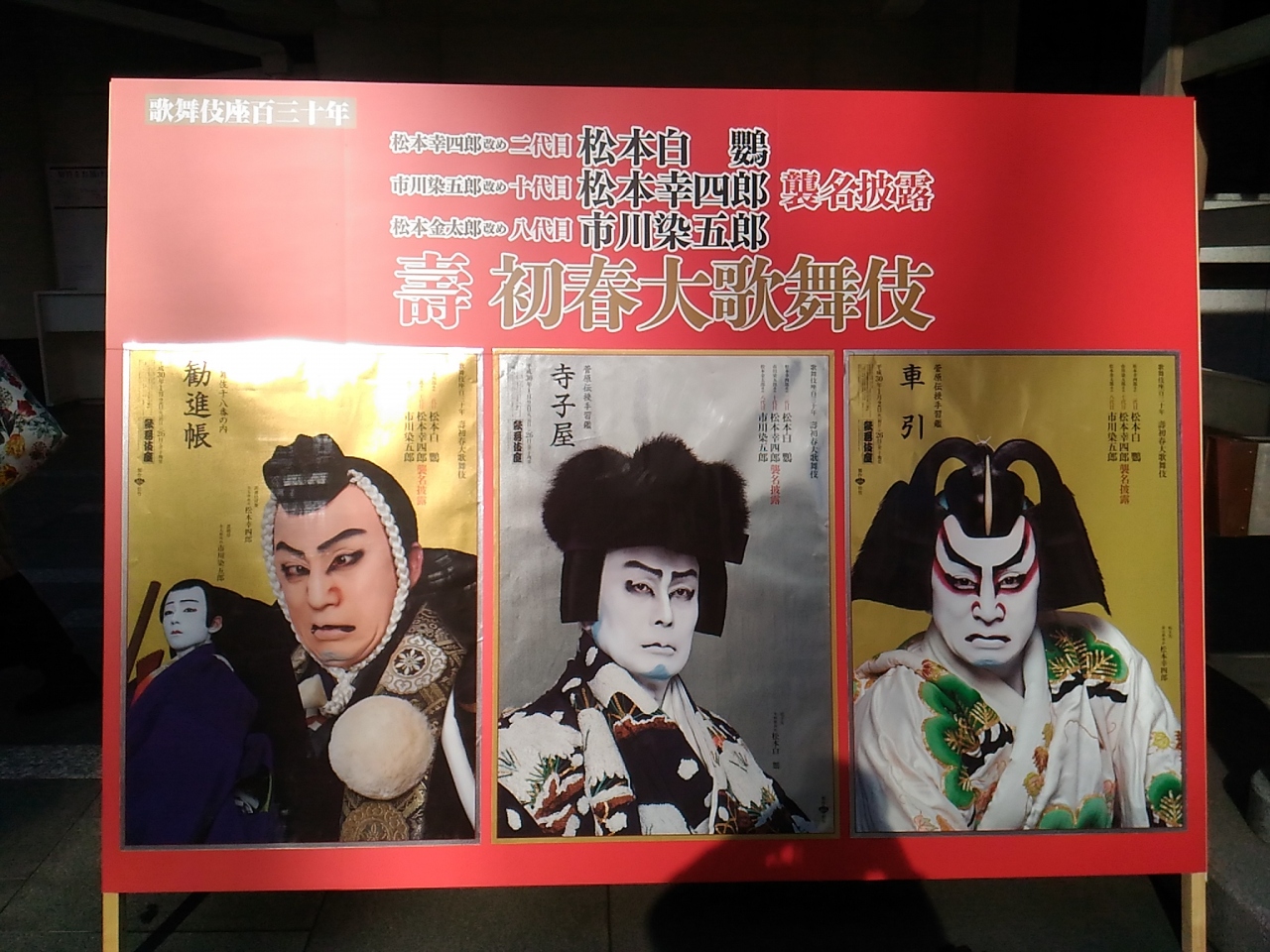 本日は銀座界隈からのスタート、築地方面から晴海通りを歩いて東銀座までくると右手に歌舞伎座が見えてきます。先日3代襲名披露のニュースが流れていて、八代目市川染五郎が引っ張り凧でしたが、歌舞伎座にも写真看板が飾られていました。興味のある方は今しかないと思いますので、是非お早めに。