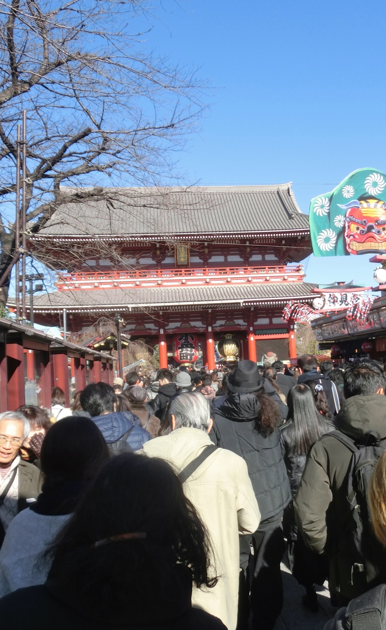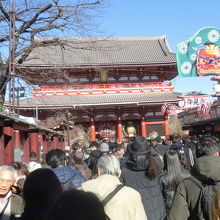 人混みを避けて、横からまわる手もあるのだが、正月くらいは正面からと仲見世を歩いたが、宝蔵門までたどり着くのもひと苦労。