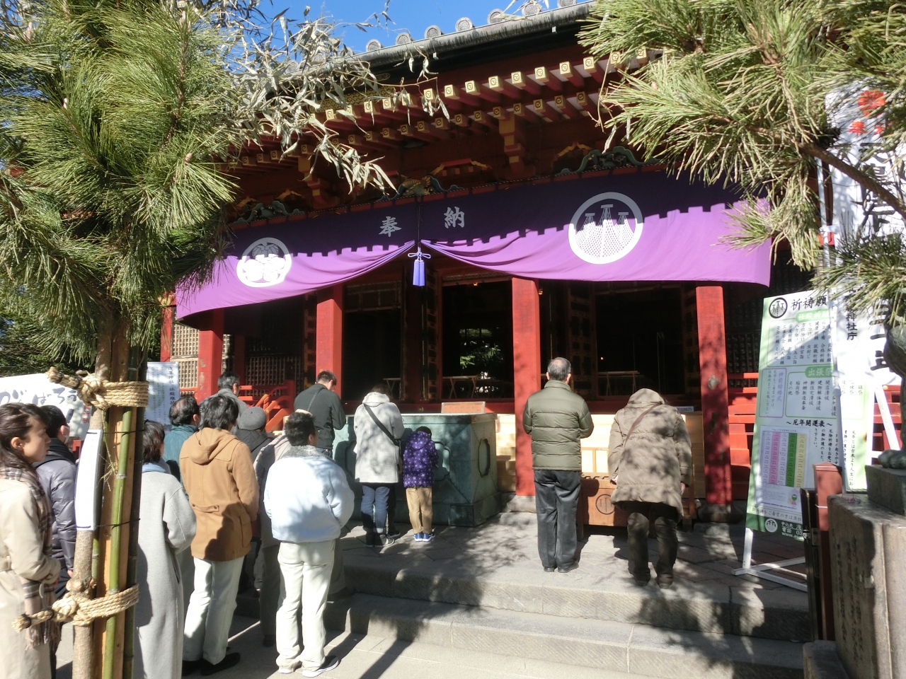 浅草寺ほどではないが、ここも参拝客で長い行列。