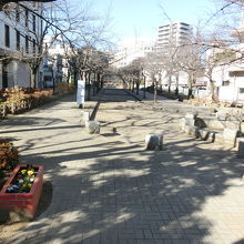 今では、埋め立てられて、掘り割りだから、細長い公園に。