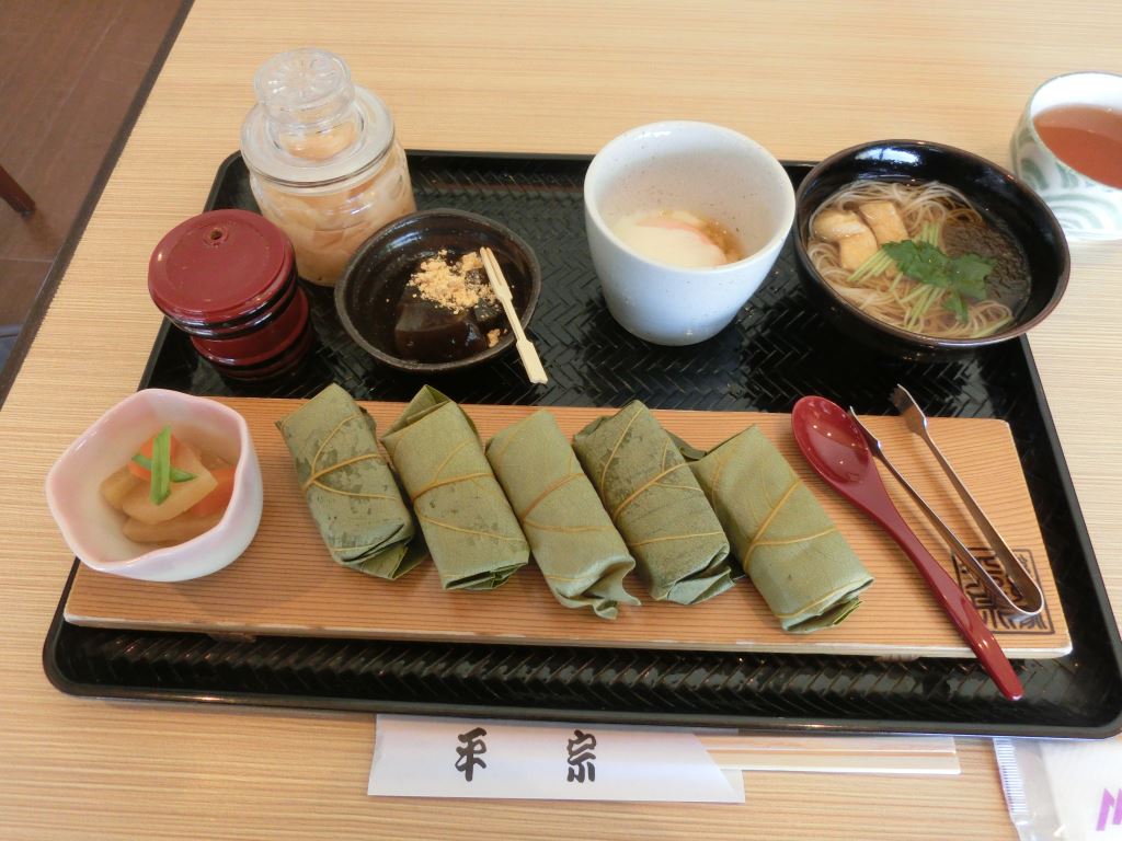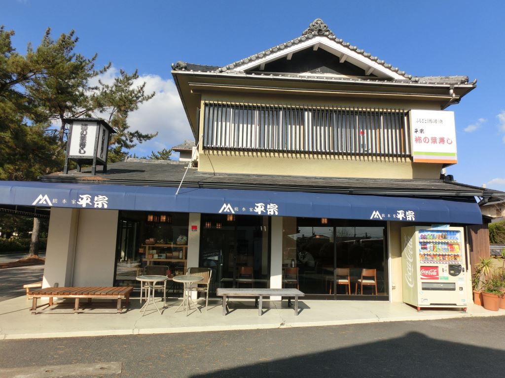 法隆寺と中宮寺を参拝の後、昼食で利用しました。法隆寺南大門を出て食事処の並ぶ左手の参道を数分歩くと柿の葉寿しの老舗平宗の法隆寺店があります。御土産の他に奥で食事もできるようになっています。和風のカフェのような感じです。奈良ランチ1,150円は柿の葉寿し五貫、三輪素麺、温泉卵、小鉢、ミニデザートがセットとなっていてお薦めです。柿の葉寿しは鯖、鮭、穴子、海老、小鯛の五貫で抜群の美味しさです。生姜が一瓶添えられるのも嬉しい限りです。奈良名物の三輪素麺も味わえました。当日は観光バス3台で法隆寺参拝でしたので混雑を覚悟していましたが多くの方々がお昼持参だったのか食事客はごく僅かでゆっくりと食事を楽しむことができました。すぐ目の前が大きな駐車場になっています。