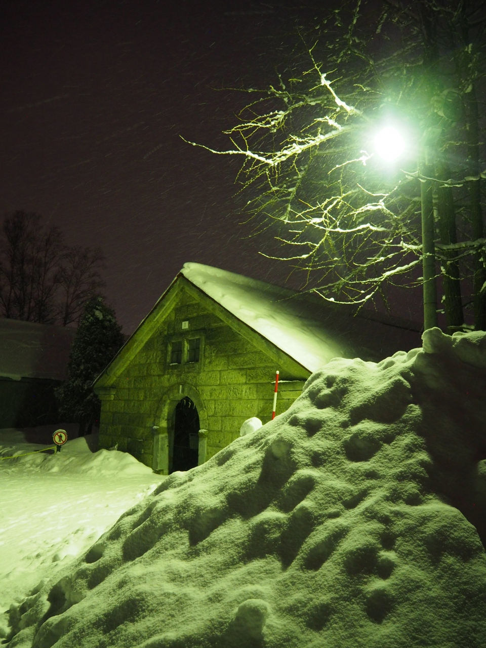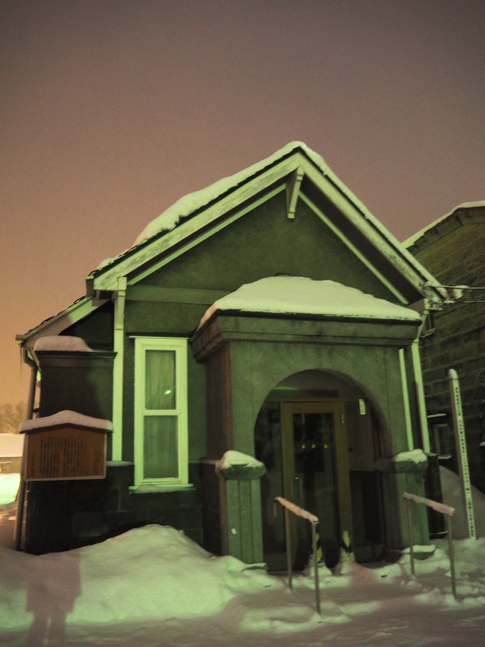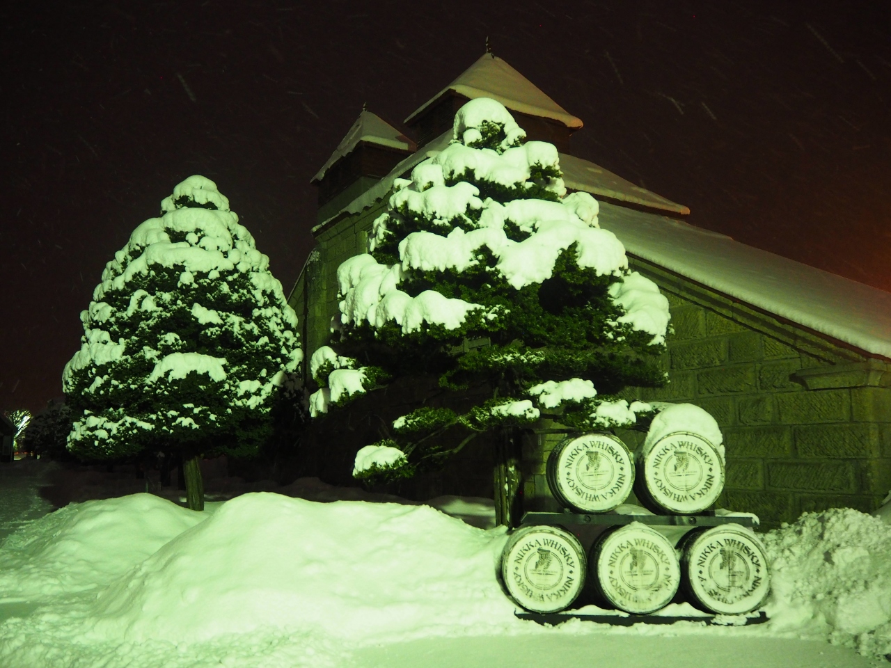 雪が降っていたので、やや遅れて「余市十字街」バス停に到着、余市蒸溜所は目の前です。