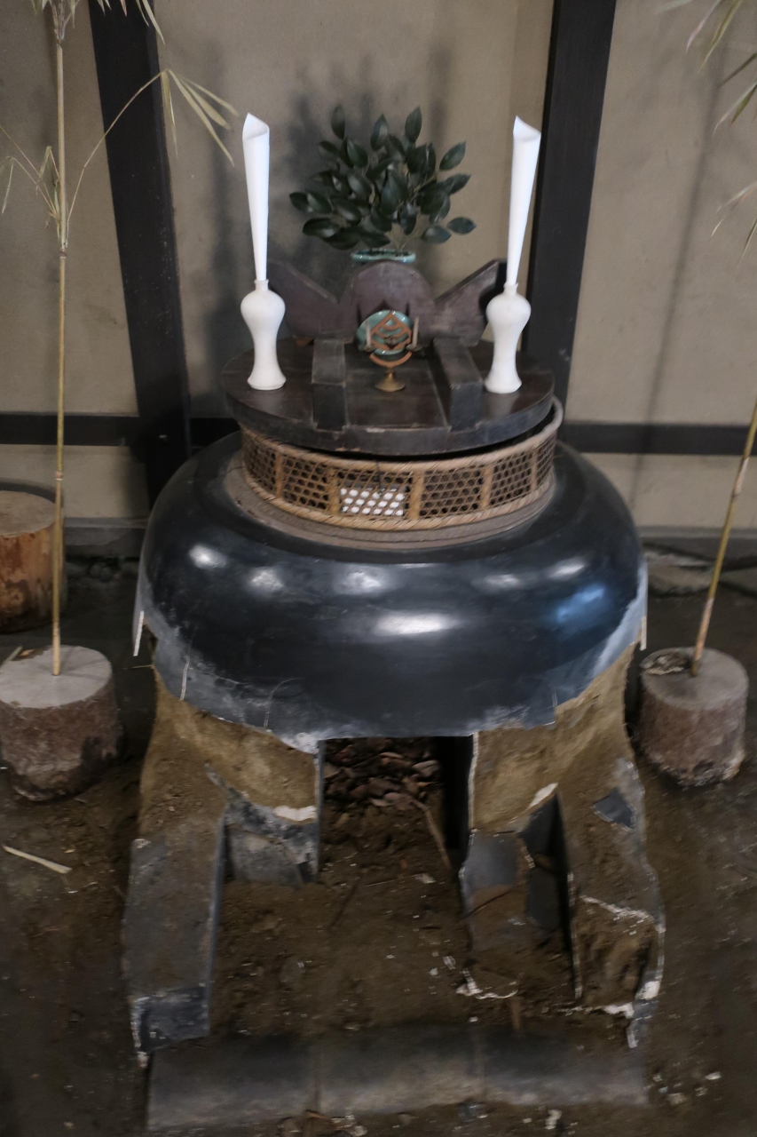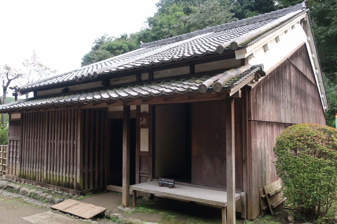川崎市立古民家園にある商家の古民家です。奈良の元興寺に近い奈良町外れを通る柳生街道沿いにあった油屋を営んでいた建物です。小さな建物ですが、目を引くのが土間に設置された大かまど。黒光りする使い込まれた大かまどは神棚の様に祀られており、昔の生活には如何に物に神様が宿ると考えられていたのかが分かります。また格子は今の奈良町にも多くある奈良格子で特徴的です。