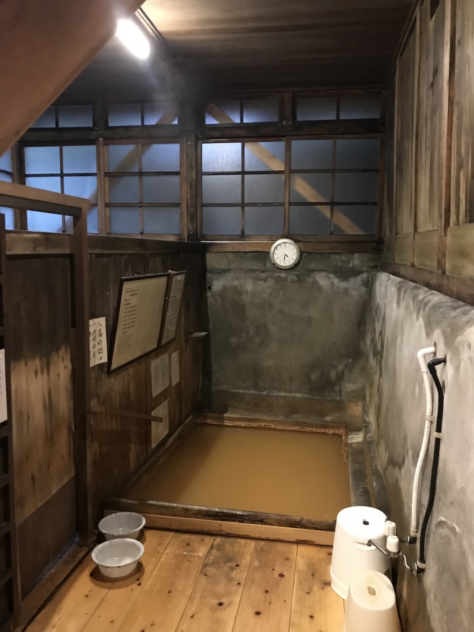谷底にある千原温泉。これほどに入浴する間にパワーを感じる湯はないと思います。湯温は低いのですが、1時間でもつかっていられる湯。そのうち指先から元気玉が出せそうな気がします。極上の湯はペットボトルに入れて有料で持ち帰ることもできます。