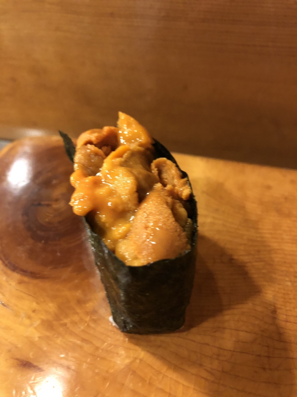 東京滞在中に五反田で安い寿司屋を発見しました。五反田駅の東側にある歓楽街の一角に馬太郎さんがありました。ネタは新鮮で雰囲気は庶民的なお寿司屋さんです。中トロやウニ・イクラと高そうお寿司ばかり握っていただきましたが生ビール2杯と焼酎も一杯呑んで5000円でお釣りがくる程リーズナブルな価格でした。