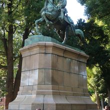 国立近代美術館・工芸館の入口近くにある木々に囲まれた地に北白川宮能久親王銅像が建てられています。近衛師団の師団長を務めた皇族軍人で、明治28年に台湾征討戦の従軍中にマラリアで病没されました。皇族にも拘わらず軍服で馬に跨るすがたは勇猛果敢な姿をしており、立派です。
