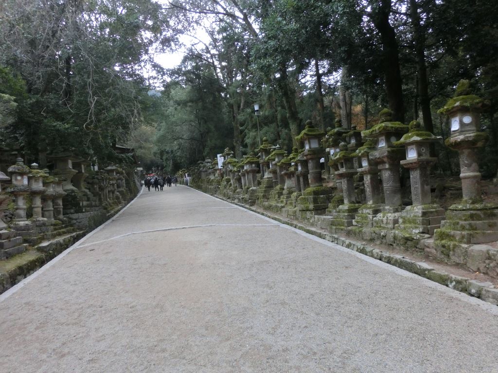 春日大社は二の鳥居から入りました。両側に石灯籠の並ぶ木立の参道から既に由緒、歴史を感じさせます。朱の南門を入り幣殿に参拝します。2016年に式年造替を終えた朱の鮮やかな本殿が奥に見えますがまだ8時半前で特別拝観には早すぎました。帰路は摂社の若宮神社、金龍神社、夫婦大国社を巡り駐車場に戻りました。