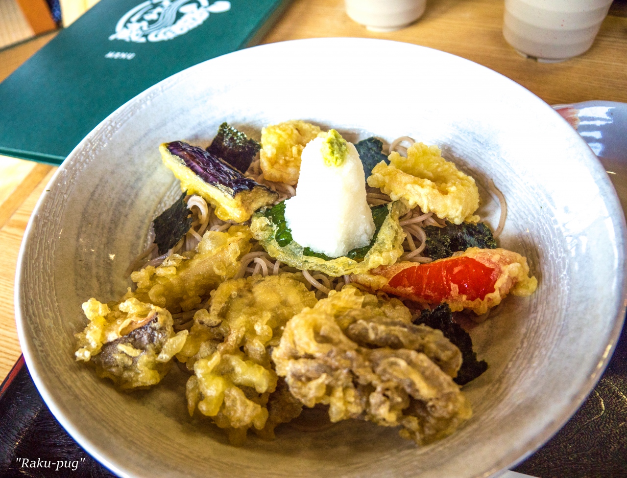 農場内で採れた 山葵の葉をあしらったオリジナルそばメニューは