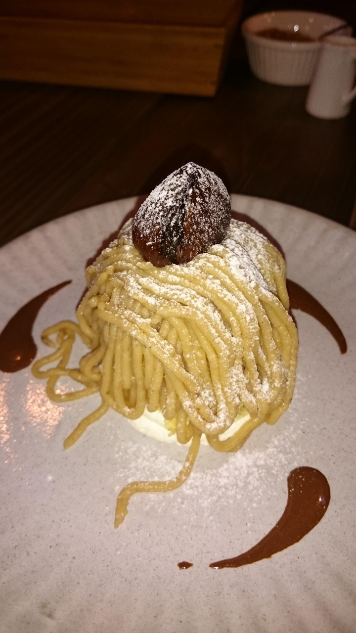 12月中旬の平日15時ごろに3人で訪れました。三条会商店街を堀川通から西に150mほど行ったところにあります。さっそく、テレビでも話題になった10分モンブランをオーダーしました。オーダーしてから作るとのことで、しばらくすると奥の菓子工房に案内されガラス越しに完成するまでの工程を見ることができました。できあがったモンブランが席に運ばれてくるとスタッフが食べ方を説明してくれます。中のメレンゲが最初はサックと、しばらくすると馴染んでしっとりとしてくるとのこと。10分以内とともに10分かけてじっくりと味わって食べて下さいということのようなので、最初はゆっくり食べていましたが美味しいのでアッという間に食べ終わってました。建物は町屋をリノベーションしたものですが、店内はアンティーク調のインテリアで天井も高く開放感のある落ち着いた雰囲気でした。