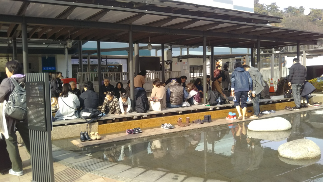2017年12月に訪問。熱海駅を出てすぐ目の前の広場の一角が足湯になっており、自由に利用できるようになっていました。規模としてはまずまず大きな足湯で40人くらいは一度に利用できる大きさでした。利用できる時間が決まっており、9時~16時ということなのでご注意ください。温度は詳しくはわかりませんが40℃くらいに感じました。さすが温泉観光都市熱海と言った光景でした。