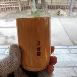 お店の中をみていると、竹の器に入ったお茶をくださる粋なサービスが。
