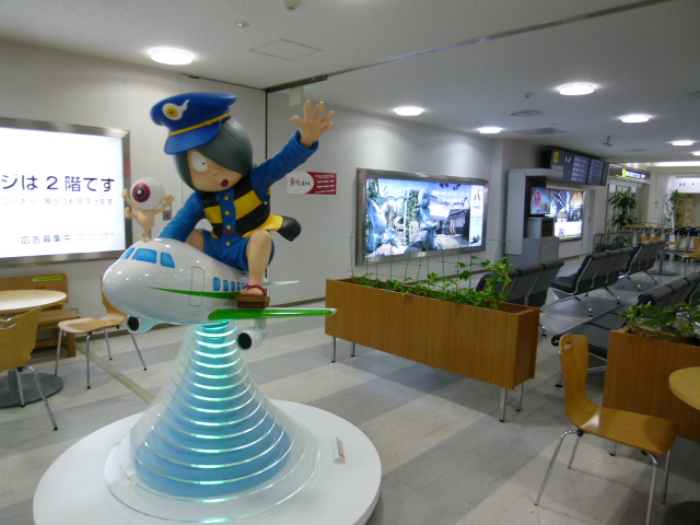 山陰地方空の玄関口「米子空港」へ旅の途中立ち寄りました。ここは鳥取県出身の漫画家・水木しげるさんの名作「ゲゲゲの鬼太郎」の妖怪の名前が付く空港としても知られています。