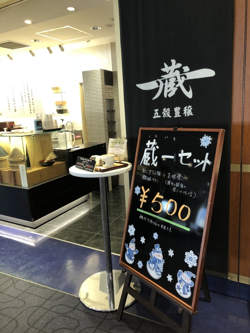 JAL便で出発する際によく利用します。500円でおにぎりとお味噌汁のセットをいただけるのでささっと手軽に済ますことができます。周りも同じような人がたくさんいました。利用したことはないですがテイクアウトもしてくれるようです。