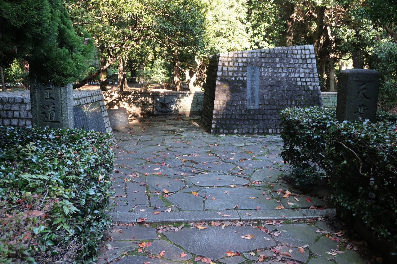 北の丸公園を武道館側から入り、近衛歩兵第一連隊記念碑の先を更に南に進んだ所に近衛歩兵第二連隊記念碑があります。近衛歩兵第二連隊も明治7年に創設された日本陸軍最初の歩兵連隊。皇居に近い北の丸に二つの近衛師団があった訳です。石積みの台の様な碑には、銘文、歴代連隊長名が刻まれています。