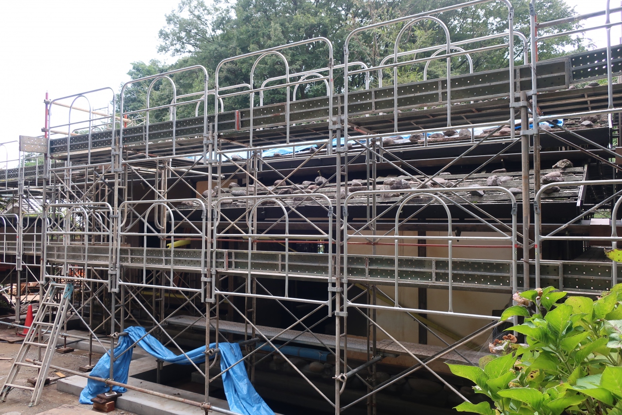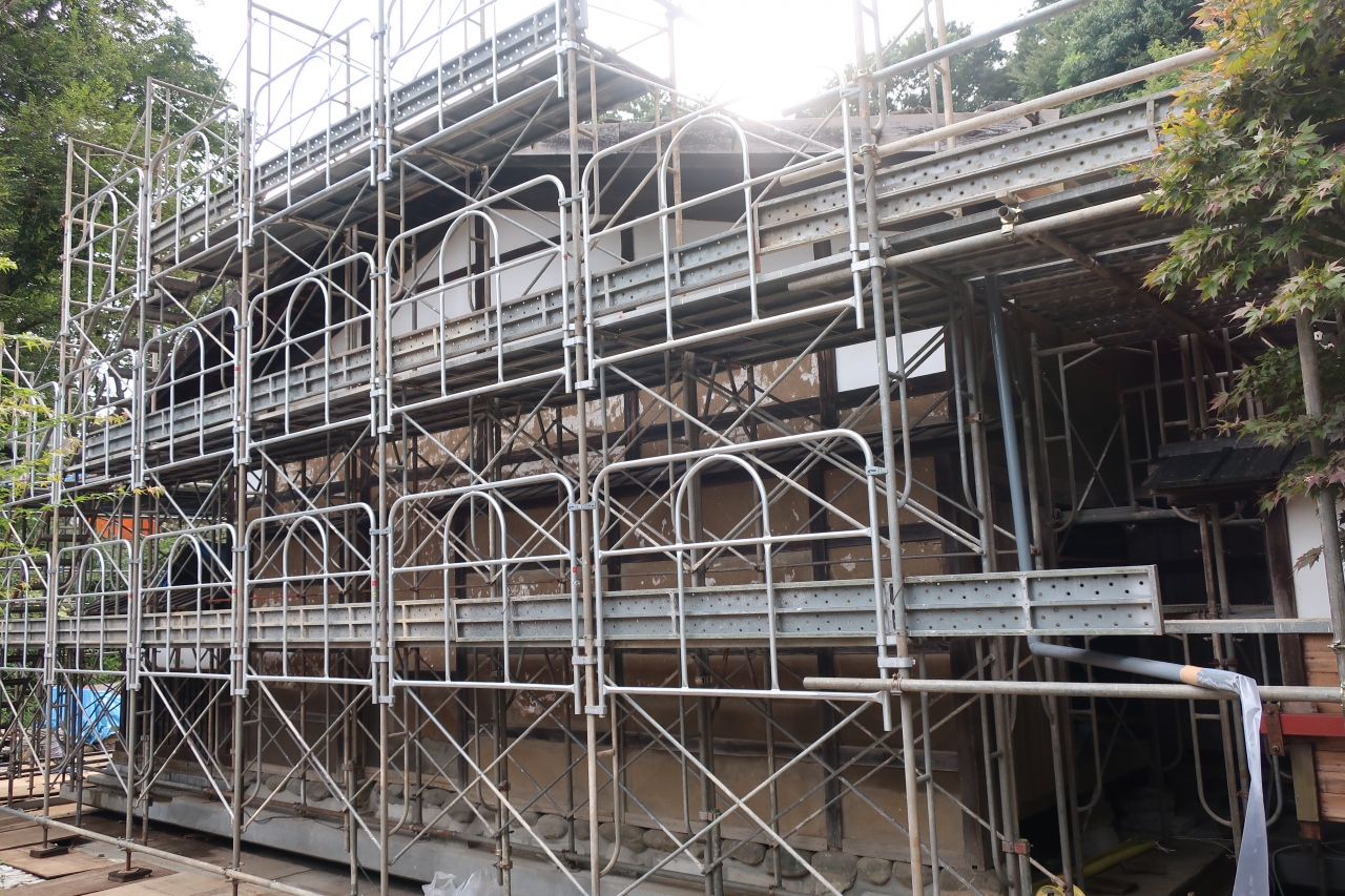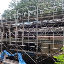 訪れた際は丁度修復工事中で建物自体は余り良く見られませんでした。しかし、足場は幕に覆われておらず、足場の間から修復中の建物の様子を見ることができます。大抵古い建物の修復は完全に建物が覆われて行われることが多く、古い建物をどのように修復するのかを見ることは出来ません。ある意味、滅多に見られない修復の仕方が見られ良かったのかもしれません。