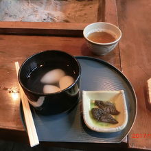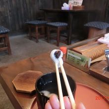 伝承園のけいらん、卵形の小さいお餅にこし餡が入っています。