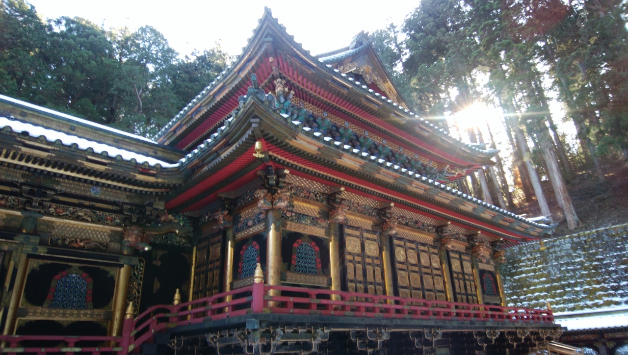 建物は国宝に指定されており、金彩が使われているので、とてもまばゆいかんじです。金閣殿とも呼ばれています。内部には、狩野探幽の描いた唐獅子が描かれています。天井には140枚の龍の絵で立体的な感じで迫力があります。家光公が着用した鎧もありました。中でこういうものの説明をお寺の方がしてくれます。