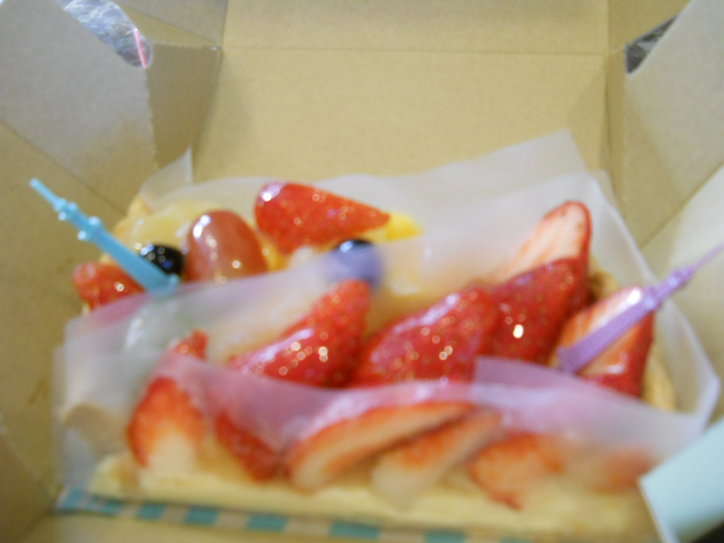 朝食を食べてすぐなので、テイクアウトで、私一人分としてイチゴとホワイトチョコのタルトと季節のフルーツタルトを購入しました。