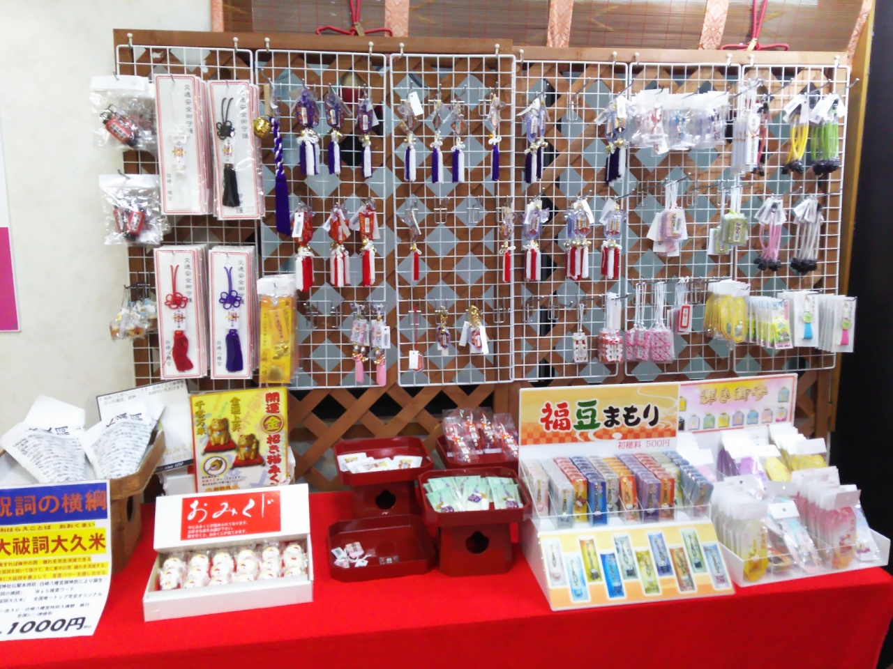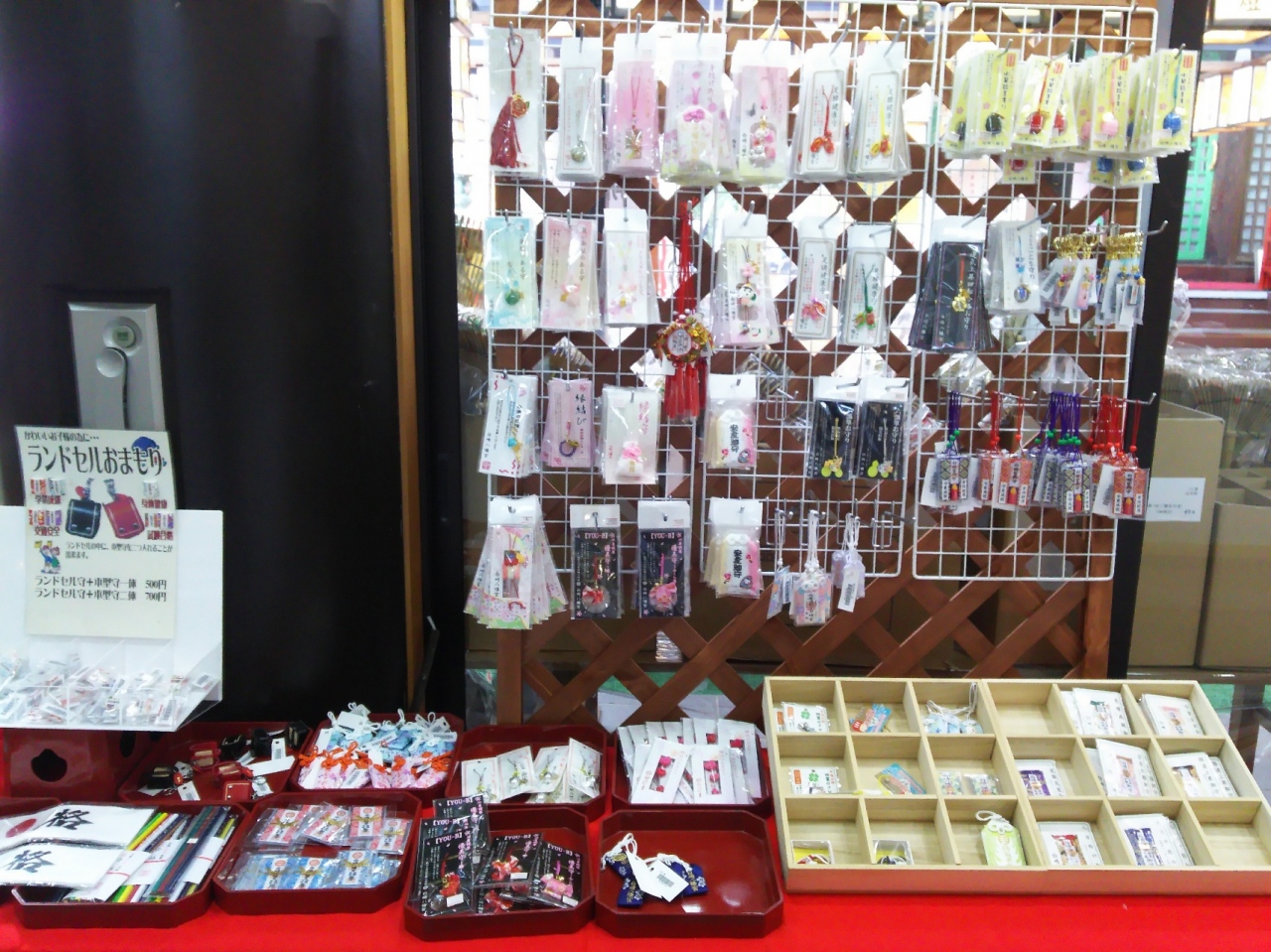 お守り売り場には健康、安産、交通安全、商売繁盛、縁結び、合格、金運等のお守りや