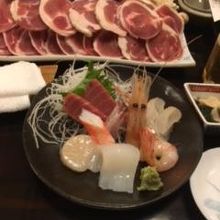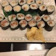 鴨鍋の他に刺身盛りと小鉢と巻物2種類がついてました。