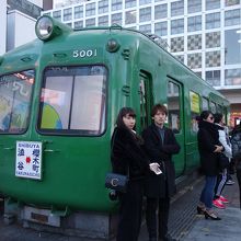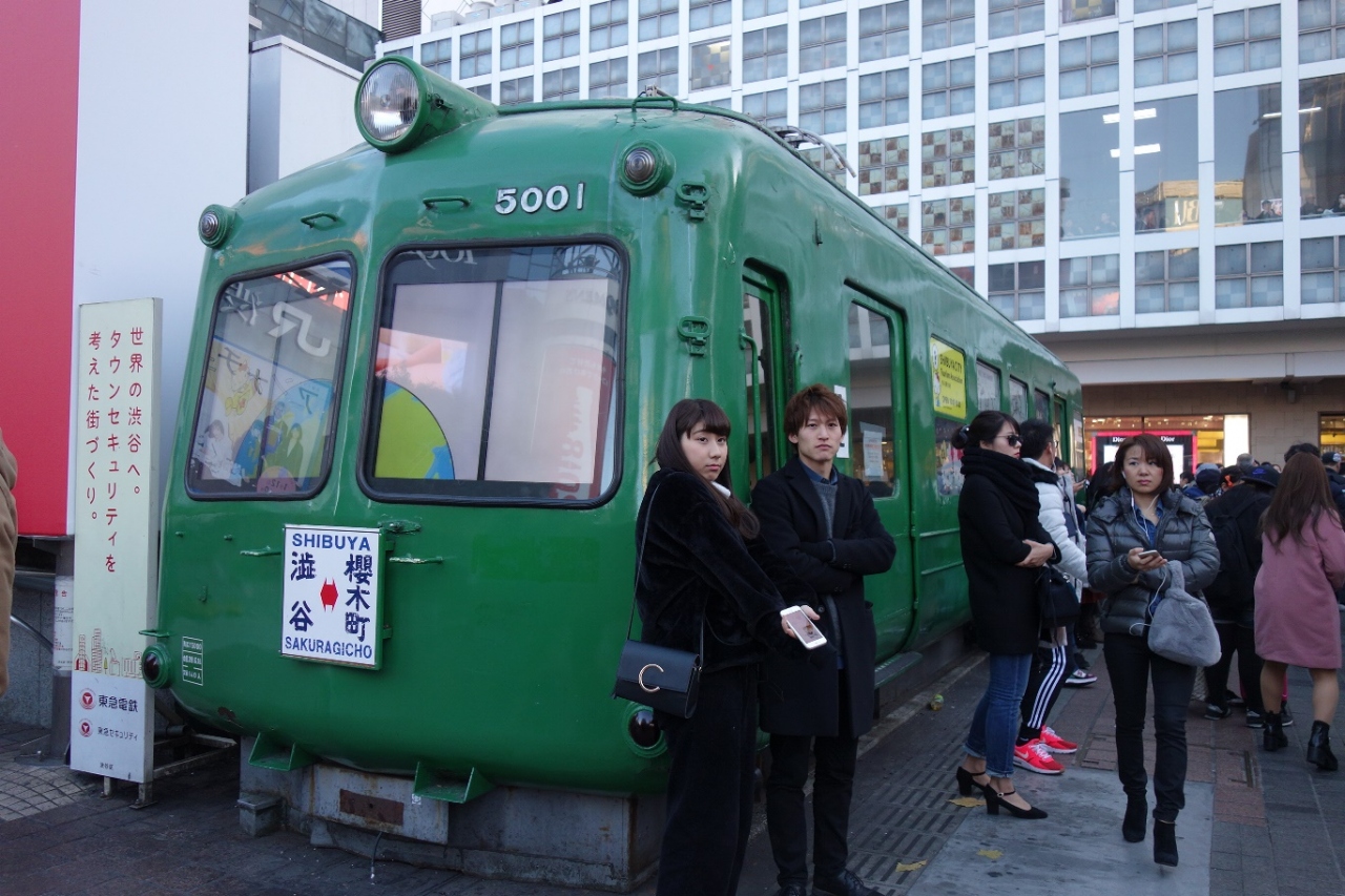 渋谷駅のハチ公近くにある東急電鉄の古い車両を使ったという観光案内所です。レトロなグリーンの車両が目立っている事と、近くのハチ公を含めて広場のようになったこの場所は車が通らないので多くの観光客でにぎわっていました。