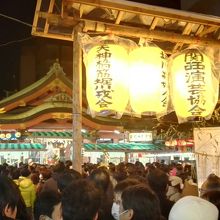 境内いっぱい人が埋め尽くしていて、すごかったです。屋台などは今宮戎のほうが多いです。